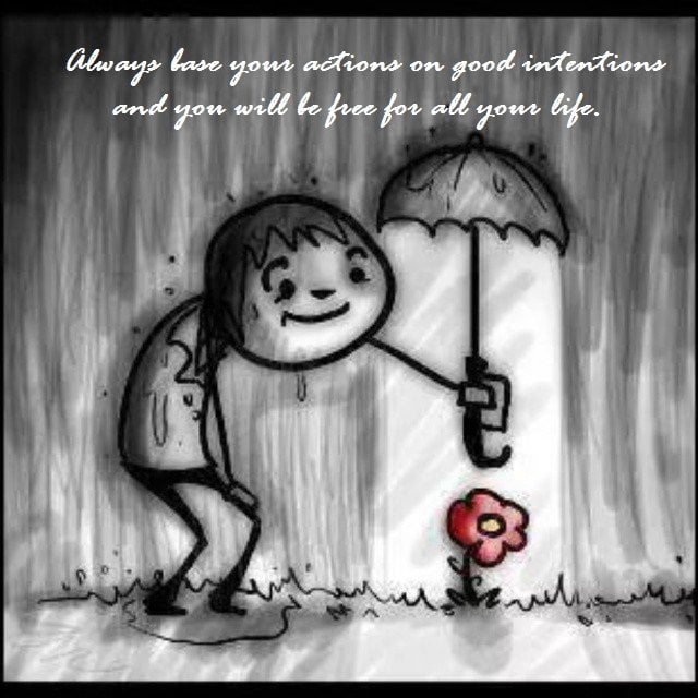 Always base your actions on good intentions and you will be free for all your life.