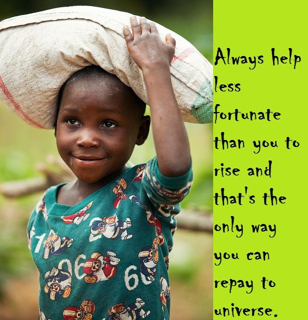 Always help less fortunate than you to rise and that’s the only way you can repay to universe.