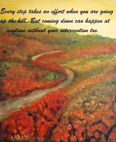 Every step takes an effort when you are going up the hill. But coming down can happen at anytime without your intervention too.