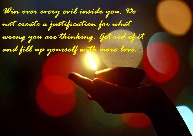 Win over every evil inside you. Do not create a justification for what wrong you are thinking. Get rid of it and fill up yourself with more love.