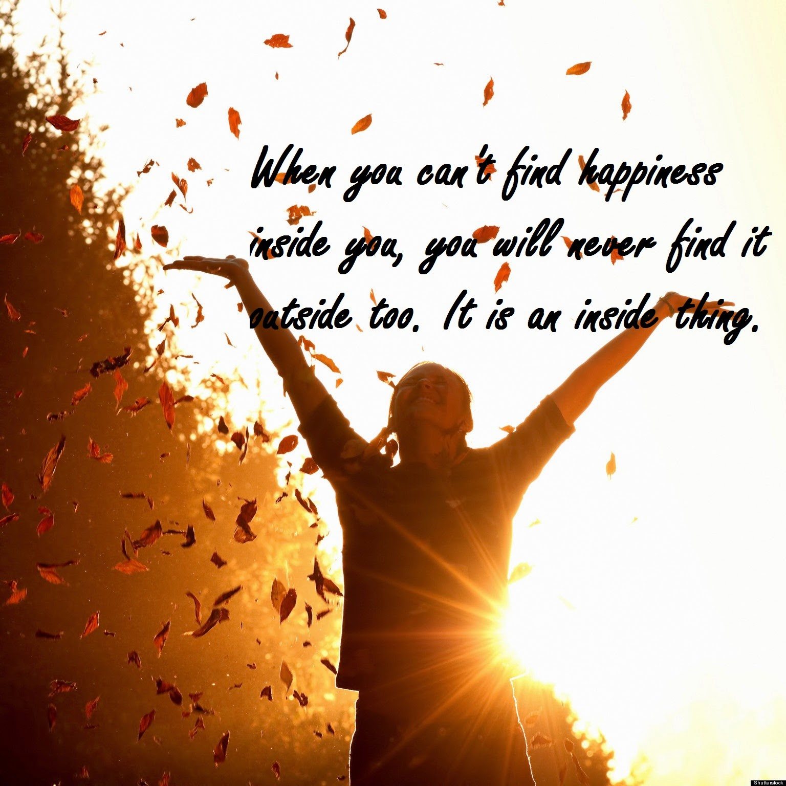 When you can’t find happiness inside you, you will never find it outside too. It is an inside thing.