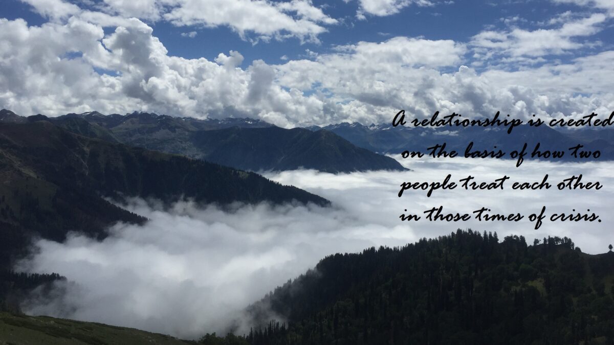 A relationship is created on the basis of how two people treat each other in those times of crisis.