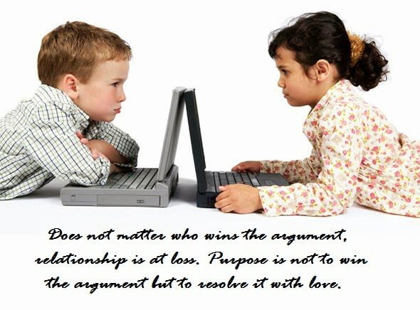 Does not matter who wins the argument, relationship is at loss. Purpose is not to win the argument but to resolve it with love.