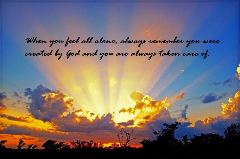When you feel all alone, always remember you were created by God and you are always taken care of.
