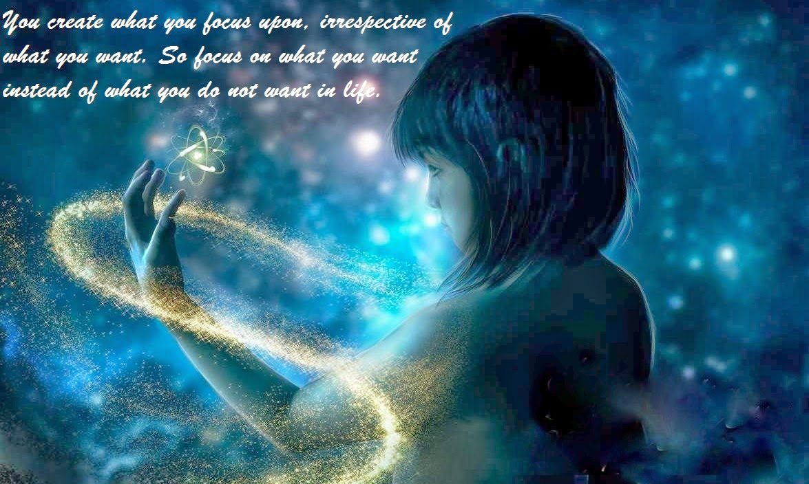 You create what you focus upon, irrespective of what you want. So focus on what you want instead of what you do not want in life.