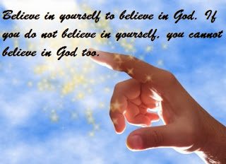 Believe in yourself to believe in God. If you do not believe in yourself, you cannot believe in God too.