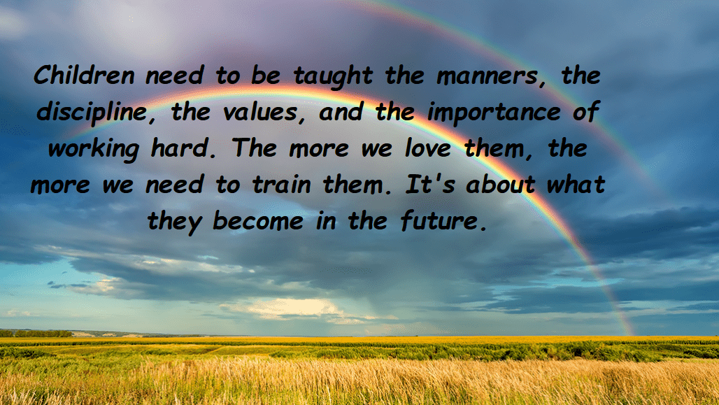 Children need to be taught the manners, the discipline, the values, and the importance of working hard. The more we love them, the more we need to train them. It’s about what they become in the future.