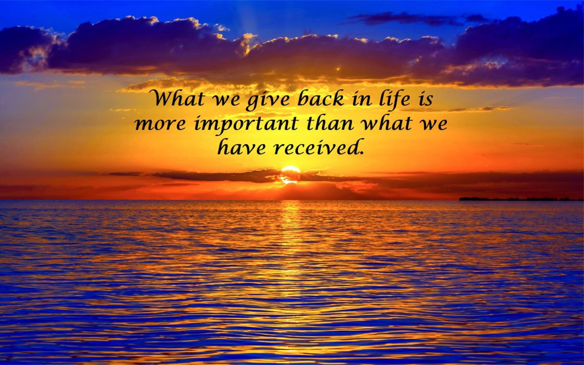 What we give back in life is more important than what we have received.