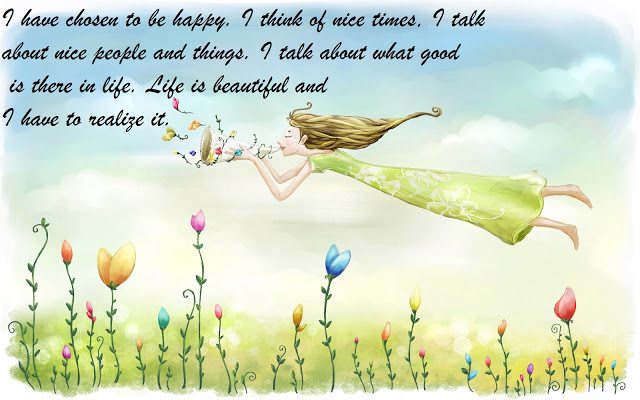I have chosen to be happy. I think of nice times, I talk about nice people and things. I talk about what good is there in life. Life is beautiful and I have to realize it.