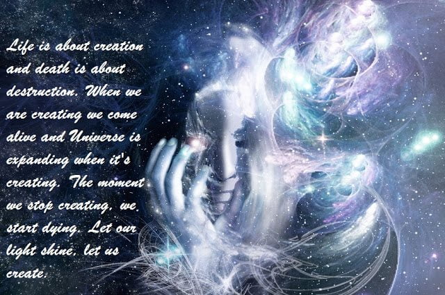 We are given our biggest asset or tool of creation and that is our mind. When we are creating we are in alignment with the Universal process of growth. Universe is ever growing. Even if one person is growing, Universe is growing along. If one person is creating, Universe is creating along. Death is also happening as old has to be replaced by new or else there would be no creation or life left after sometime. So death has to happen but we can make life better by creating. When we are creating, we are connected with our inner truth and when we are not, we are away from who we are. It is like when a child makes a mall painting he is very happy and keeps looking at it and keeps showing to everyone. He feels proud of it as he has created it. That is the joy of creation and presence of that joy is a proof that he is on the right path. But if we are not creating, we start feeling we are being wasted and life is a waste, there is nothing to do. That thought starts causing death. So we need to start creating things to be in alignment with Universal growth. But then how do we do that? As I said earlier,w e are given biggest tool that is our mind. Our mind lays the seeds of everything. If we can create something in our mind, we would be able to create that in physical reality too. So first we need to start focusing on creation in our mind. We shall keep our mind away from destructive thoughts and thoughts which cause negativity. We shall indulge into thoughts of creation and it could be as simple as how can I help more, how can I be better, how can I improve things etc instead of blaming life, system, society.