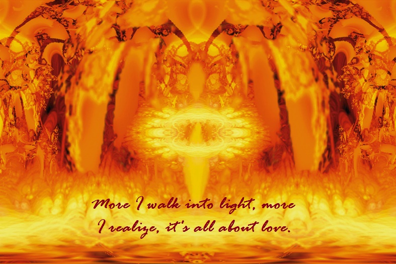 But then the big question my mind asked was, why do we have to become love? And the answer is this is who we are. We all have two conscious choices. One is to live in darkness and one is to live in light. When we live in darkness, we do not see what’s there in light as we cannot see. When we choose to live in light, we can see who we are. When we choose to live in light, we can see the darker side, where the shadow is, how it is falling and who we are. We start realizing, we are pure love and then we realize God is pure love too. he created everything with pure love and he created everything to experience love. Only love can heal everything and only love can create anything. We are most power creatures and we are made in the divine reflection of God. But we can realize this only when we are in state of love. When we are shadowed by own darkness, we cannot see who we are. We can only see who we are when we are in state of love because this is who we are. This journey is not about finding anything, or God, this journey is about finding self and it is about finding how much love we are. This journey is about dissolving any difference between you and God. What ever is not love is making the difference and love is making us one with God. This journey is about becoming one.