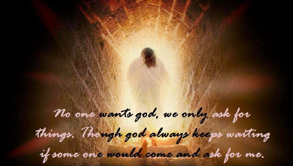 No one wants god, we only ask for things. Though god always keeps waiting if some one would come and ask for me.