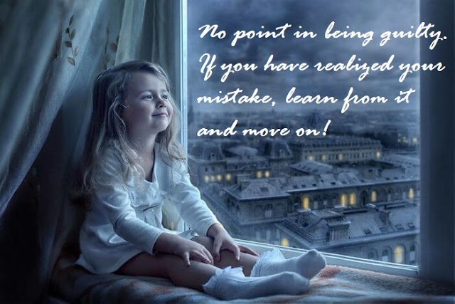 A little seven years old girl was feeling very sad after she had written her exam. She had done a small mistake. She said that I knew the answer but I did not read the question carefully, I am feeling so bad. Small guilt huh! So would feeling bad help you anywhere and the answer is no. But what have you learned from it? I should be reading every question very carefully now onward and then answer. Good girl!