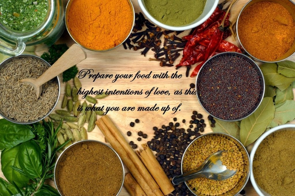 1. Try to prepare food after you have filled up yourself with happy and loving thoughts. Try to avoid cooking when you are angry.