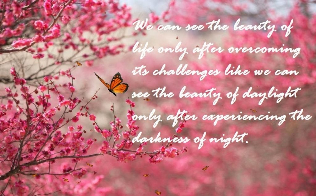 We can see the beauty of life only after overcoming its challenges like we can see the beauty of daylight only after experiencing the darkness of day night.