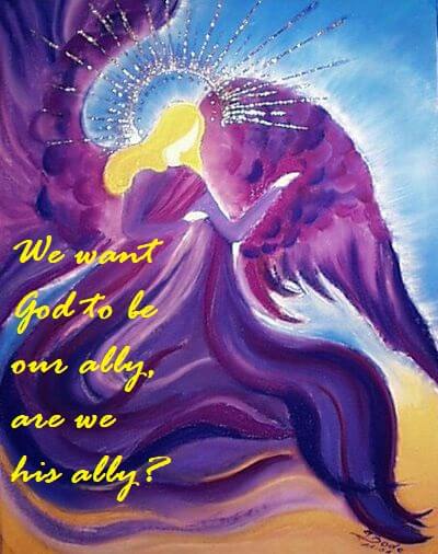 The answer is simple yet not that simple. We need to understand God. He is everything. There is nothing which is not God. So whatever we have and whatever we are and whatever we do, everything is God. But to bring his presence alive, before we ask for his alliance, let’s become his ally and he will be there.